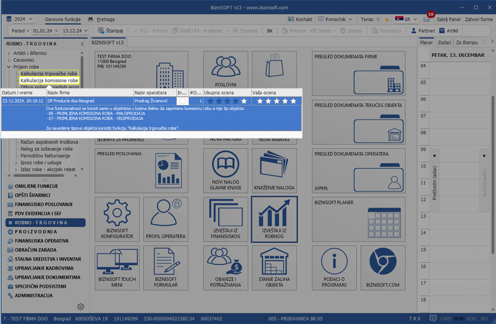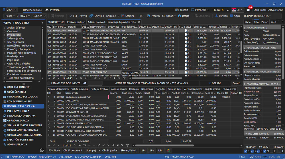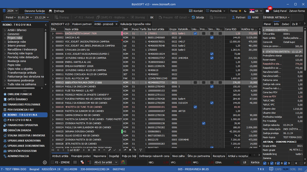 Sa zadovoljstvom Vam predstavljamo verziju 13 poslovnog programa BizniSoft – našu najnapredniju i tehnički najusavršeniju ediciju do sada, u potpunosti redizajniranu radi ubrzanja i optimizacije svih poslovnih procesa. Neka od unapređenja obuhvataju:
