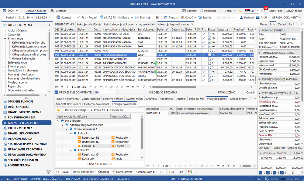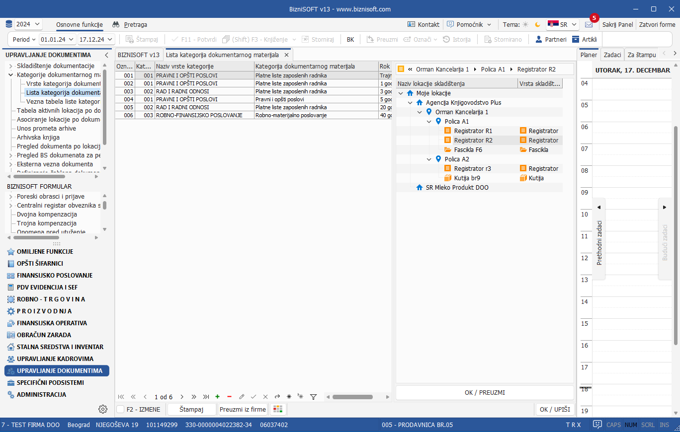 Ukoliko želite tačno da znate na kojoj lokaciji vam se u svakom momentu nalazi neki dokument koji ste primili ili kreirali u papirnom formatu, sada možete koristiti potpuno nove funkcionalnsti iz modula Upravljanje dokumentima koji će za rezultat, između ostalog, na kraju godine formirati Arhivsku knjigu – potpuno automatski.