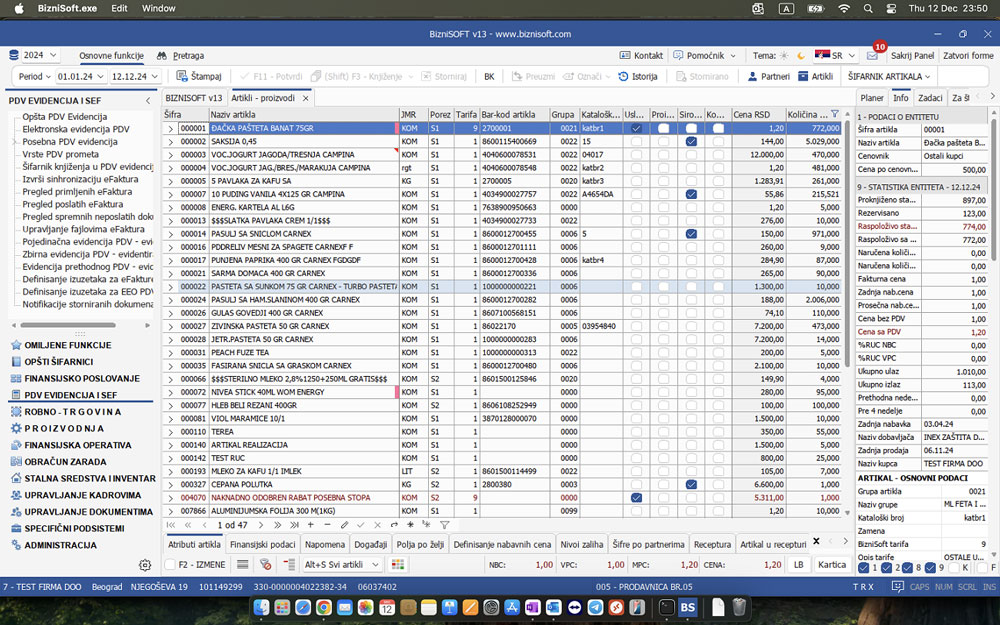 Program je izvanredan i u potpunosti pokriva potrebe proizvodnih, trgovačkih i uslužnih delatnosti.