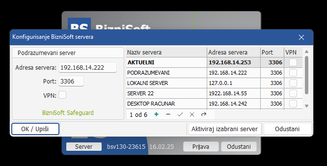 Implementirana je funkcionalnost upravljanja serverima kao zamena za dodatne ikone za startovanje BizniSoft-a nad različitim serverima. U tom kontekstu, unapređeno je sledeće: