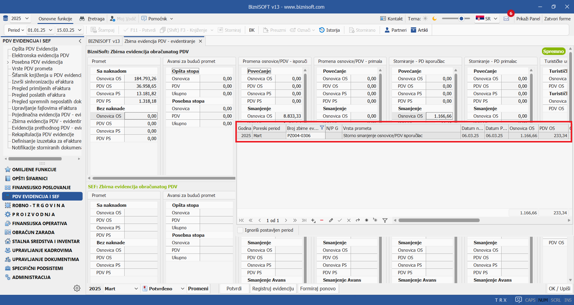 Bitno: Implementirana je nova, kompleksna funkcionalnost pod nazivom Rekapitulacija PDV evidencije koja bi trebalo da omogući usaglašavanje između različitih PDV evidencija (Finansijsko knjigovodstvo, Opšta PDV evidencija, Elektronska evidencija PDV). Detalje možete videti na https://youtu.be/RY_Vy4dQVes