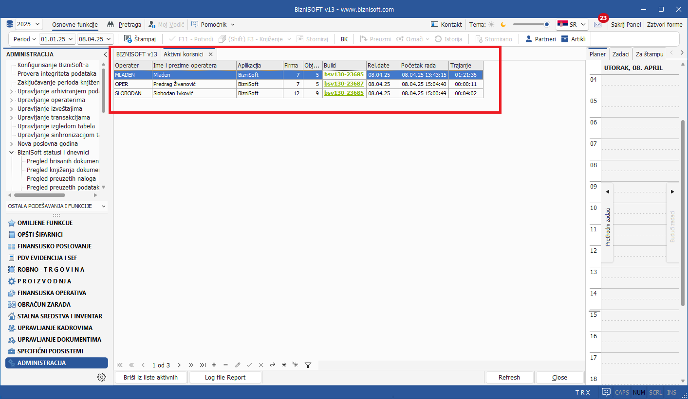 Unapređen je rad u BizniSoft aplikaciji u uslovima kada operater koristi paralelno dva monitora.