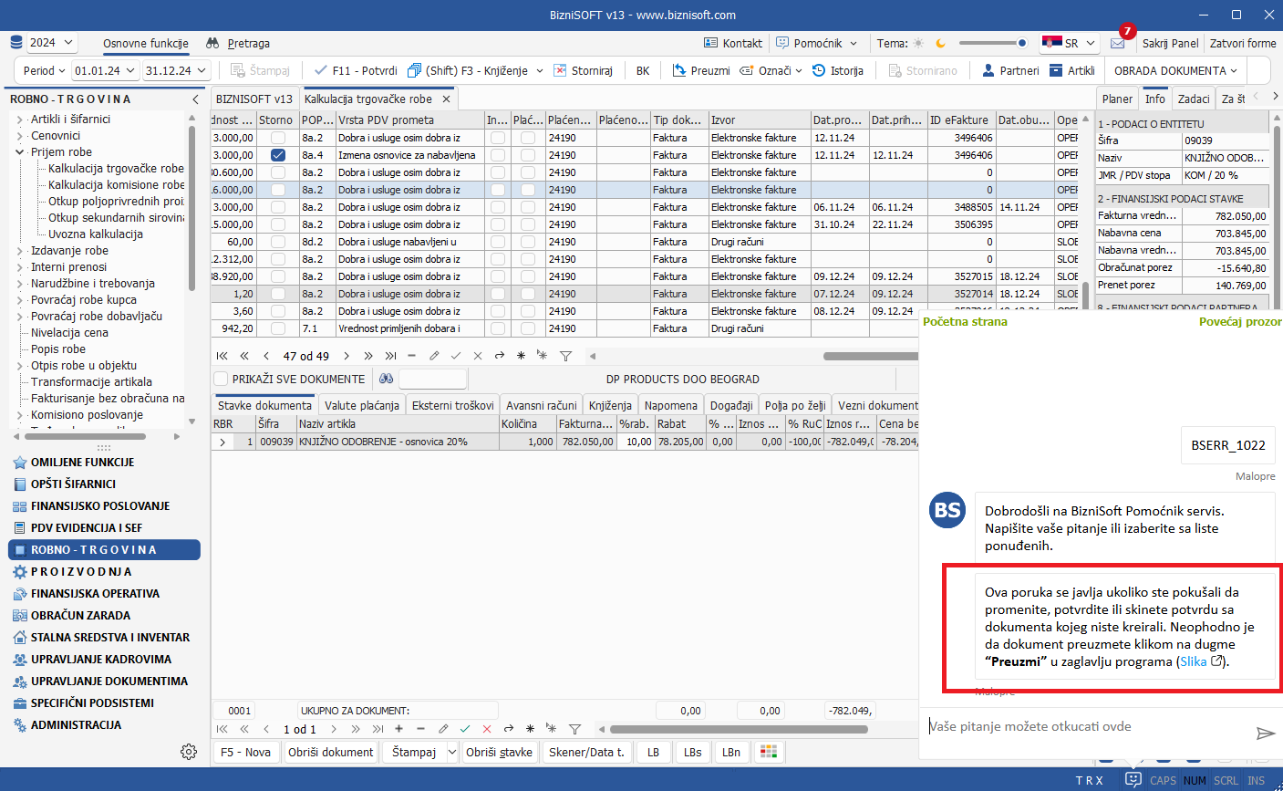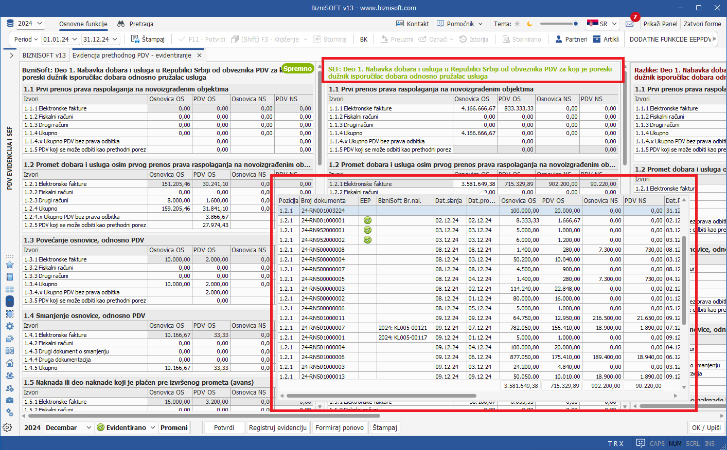 - Postavljena je nova verzija BizniSoft Ekstenzije 3.1 koja omogućava detaljan analitički prikaz specifikacije dokumenata koji sačinjavaju zbir automatskih polja na samom SEF portalu – Evidencija prethodnog poreza. Više o ovoj funkcionalnosti možete videti ovde.