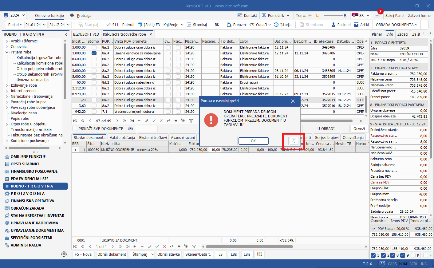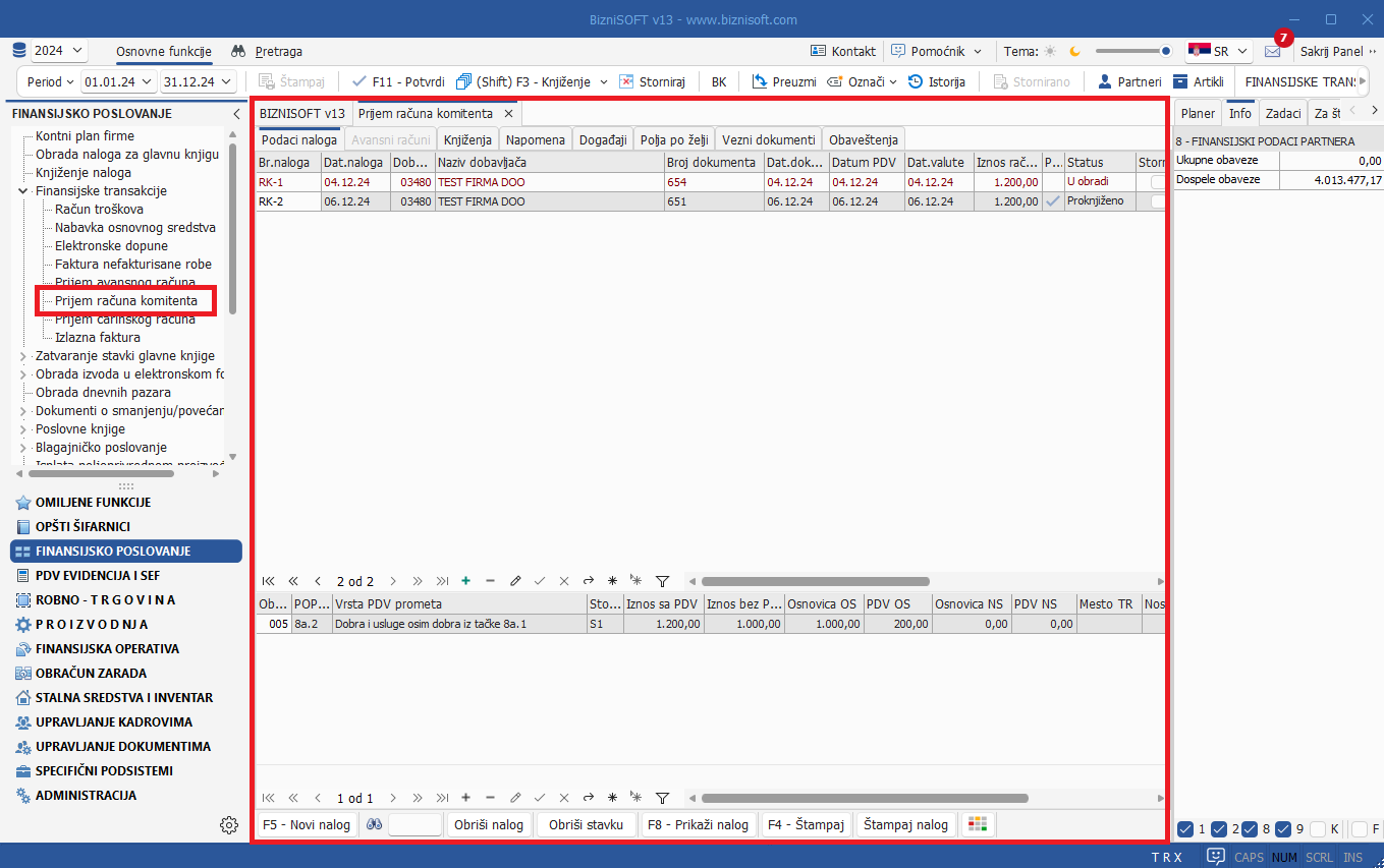 Funkcionalnost Prijem računa komitenta koja se u starijim verzijama programa nalazila u grupi funkcija Komisiono poslovanje (u modulu Robno-trgovina) je u Verziji 13 zamenjena potpuno novom funkcijom pod nazivom Prijem računa komitenta u delu Finansijskih transakcija u modulu Finansijsko poslovanje: