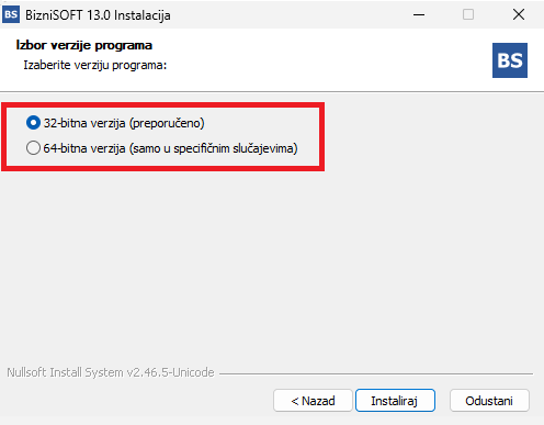 Omogućena je instalacija programa u 64-bitnoj verziji. Prilikom instalacije klijenta i/ili POS-a, instalaciona procedura će ponuditi izbor između 32-bitne ili 64-bitne verzije programa (bez obzira na verziju vašeg Windows operativnog sistema). Naša je preporuka da se instalira 32-bitna verzija zato što se prilikom testiranja pokazalo da radi za nijansu brže; 64-bitna verzija se može iskoristiti samo za specifične situacije kada je potrebno, primera radi, eksportovati veliku količinu podataka u Excel što bi pod 32-bitnom verzijom prouzrokovalo sistemsku grešku Out of memory:
