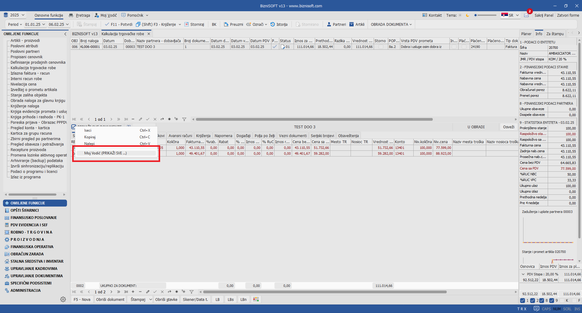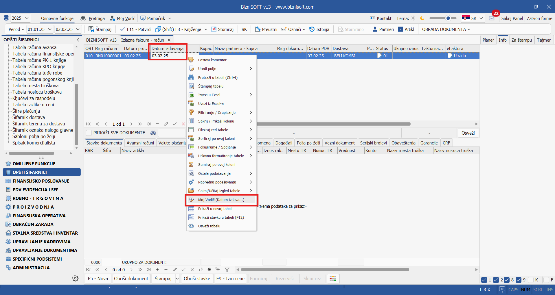 Pored toga, klijentu je omogućeno da pokretanjem opcije Moj vodič kreira i unosi sopstvena uputstva i koristi napomene koje mogu biti vidljive samo operaterima vlastite firme (interni vodič) ili da kreira priručnik od opšteg značaja svim korisnicima BizniSoft-a. Do ove funkcionalnosti se dolazi desnim klikom nad željenim elementom forme: