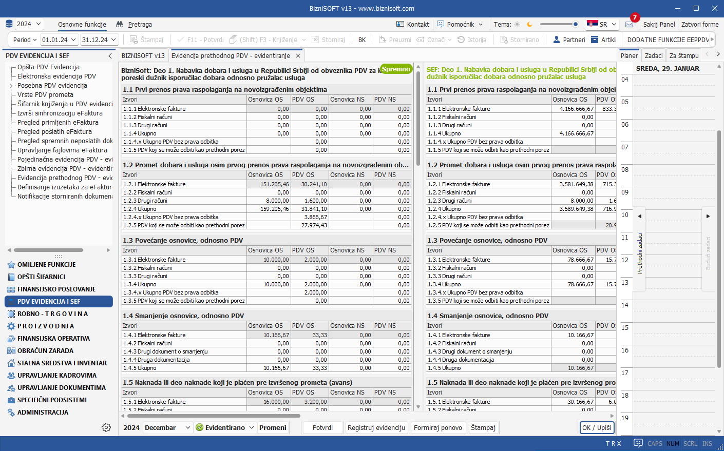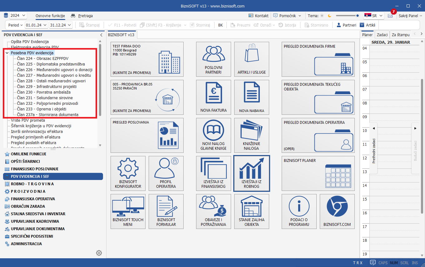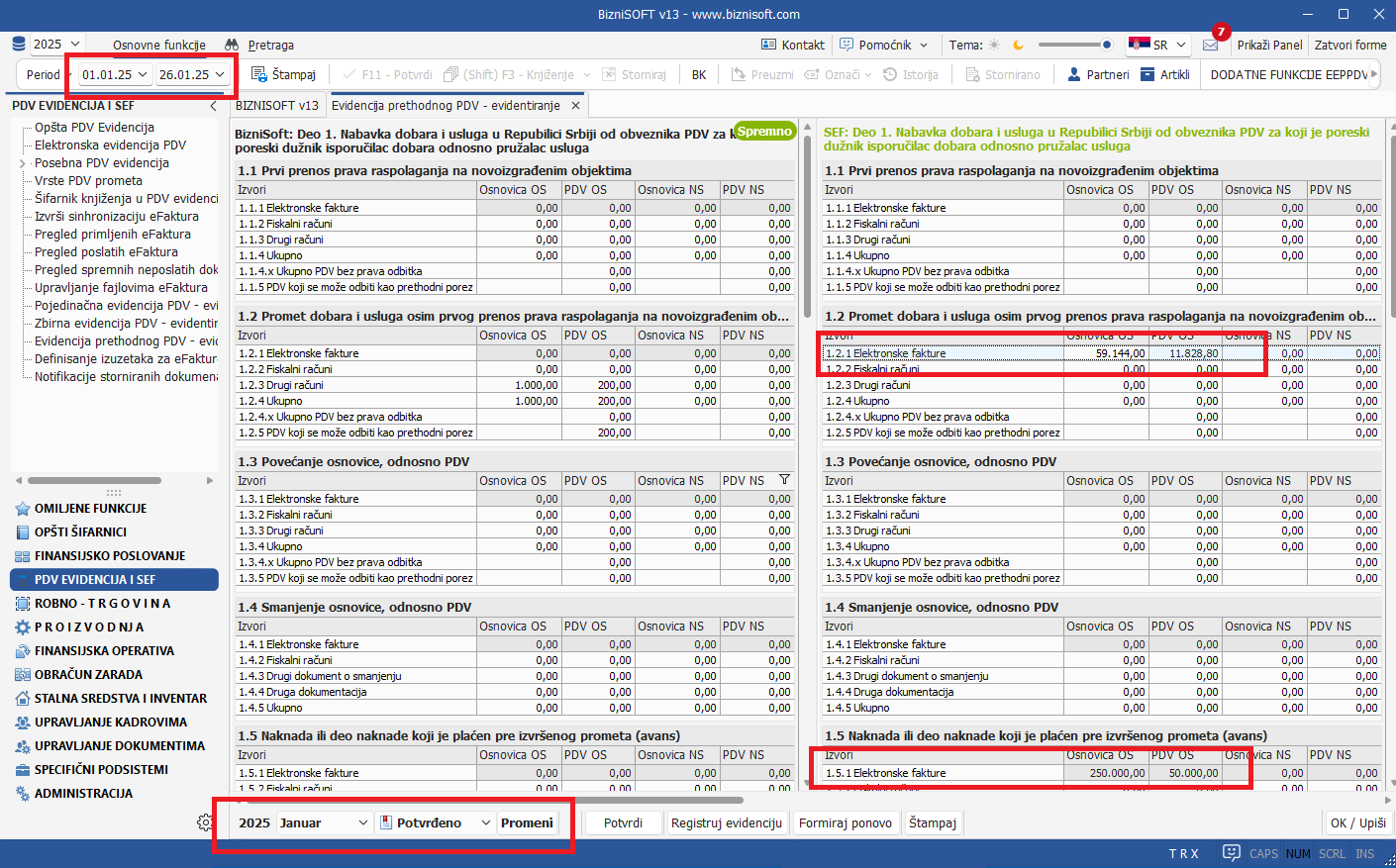 Uveden je poseban modul PDV EVIDENCIJA I SEF koji na jednom mestu objedinjuje sve relevantne funkcionalnosti. U tom kontekstu, u najnovijoj verziji ostvarena je potpuna integracija sa SEF-om, Posebna PDV evidencija je dorađena u skladu sa aktuelnim Pravilnikom o PDV evidenciji, uključujući automatsko evidentiranje obračunatog i prethodnog PDV u skladu sa važećim pravilima. Funkcionalnosti koje su se u tom smislu u verziji 12 nalazile u modulu ADMINISTRACIJA su iz pomenutog modula trajno uklonjene: