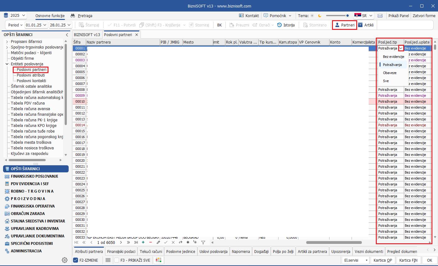 U Šifarniku poslovnih partnera dodata su dva nova polja: Posl.jed.tip i Posl.jed.uplate.