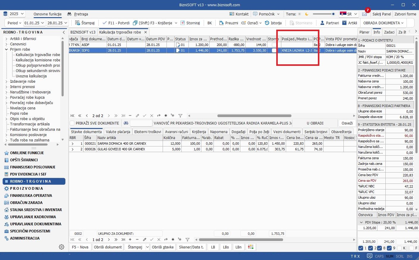 Bez evidencije – poslovne jedinice poslovnog partnera se neće unositi niti u transakcijama prijema, niti u transakcijama izdavanja robe