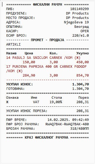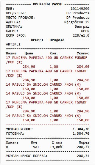 Implementiran je novi konfiguracioni parametar 11064 – Ne vrši grupisanje artikala prilikom izdavanja fiskalnog računa kako bi se u štampi računa zadržao prikaz redosleda po kome je kucano: