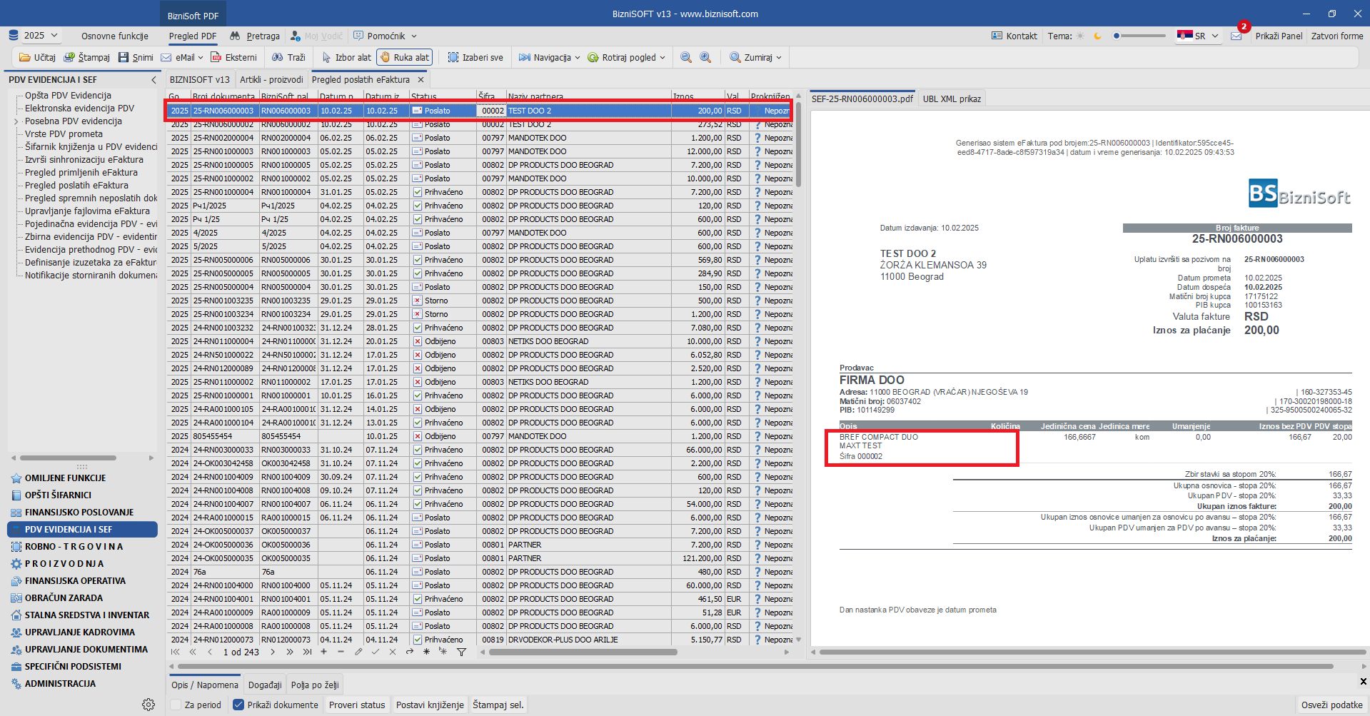 PDV EVIDENCIJA I SEF
