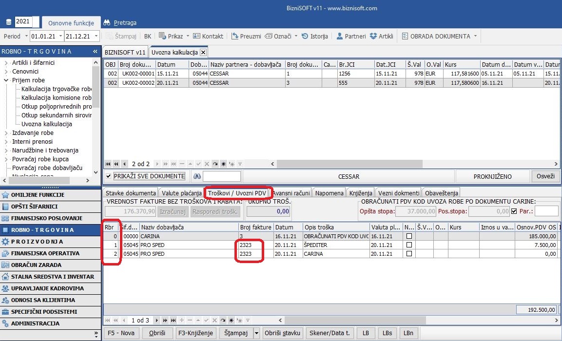 Tehnički je redizajnirana funkcionalnost eksternih troškova kod kalkulacija (i nasleđenih tabela) i uvoznih kalkulacija: