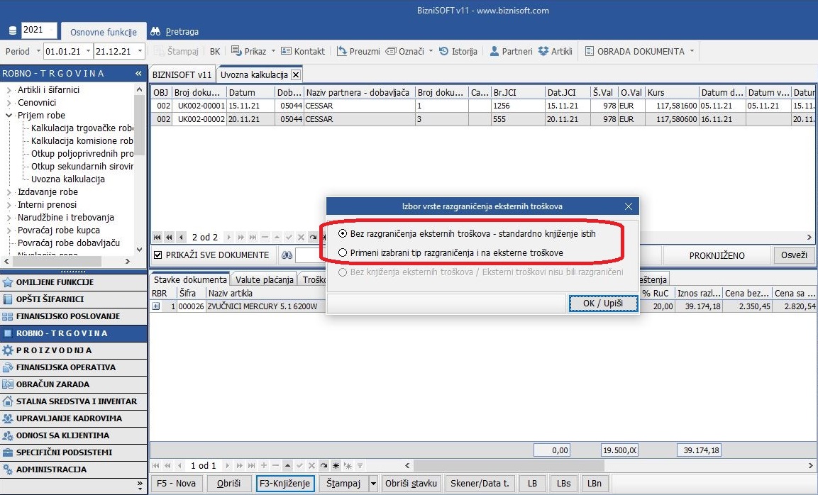 - Ukoliko na uvoznoj kalkulaciji postoji samo 1 stavka i to je PDV carine, program će da pita za razgraničenje, ali to se ignoriše.