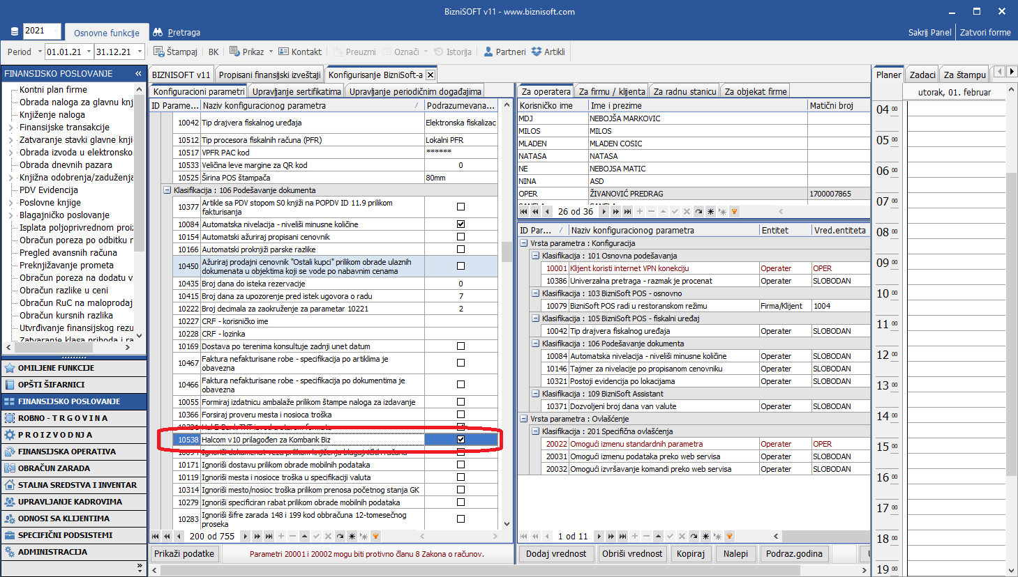 Implementiran je novi konfiguracioni parametar [bluetext]10538 – Halcom v10[/bluetext] čija aktivacija obezbeđuje kreiranje pravilne strukture fajla za formiranje tekstualne datoteke za uvoz u e-banking – Kombank Biz: