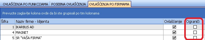 U spisku firmi – klijenata vidi samo firme na koje je ograničen