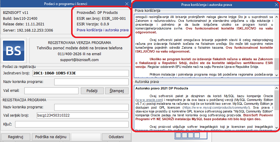UNAPREĐENJA POSTOJEĆIH FUNKCIONALNOSTIForma [bluetext]Podaci o programu[/bluetext] je redizajnirana i dopunjena napomenama o [bluetext]Pravima korišćenja i autorskim pravima[/bluetext]: