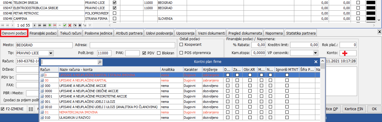 Omogućena je pretraga konta u [bluetext]Šifraniku poslovnih partnera[/bluetext] pomoću tastera + u tabu [bluetext]Osnovni podaci[/bluetext]: