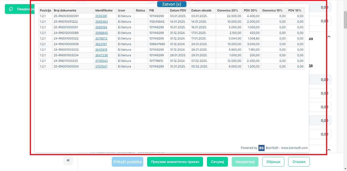 U verziji ekstenzije 3.1 dodata je mogućnost pregleda analitičkog prikaza računa za automatska polja evidencije prethodnog poreza na samom SEF portalu. Ova sjajna funkcionalnost namenjena je svim obveznicima elektronske evidencije prethodnog PDV na SEF i ni na koji način nije povezana sa BizniSoft-om.